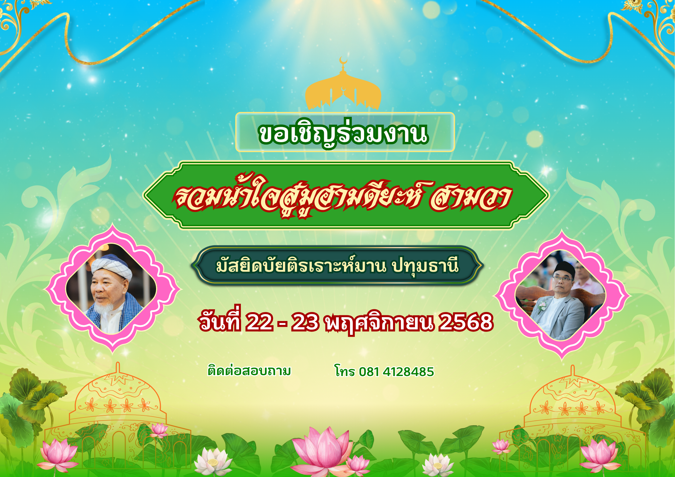 ขอเชิญ”ร่วมงานวันรวมน้ำใจสู่มูฮำมดียะห์ สามวา”